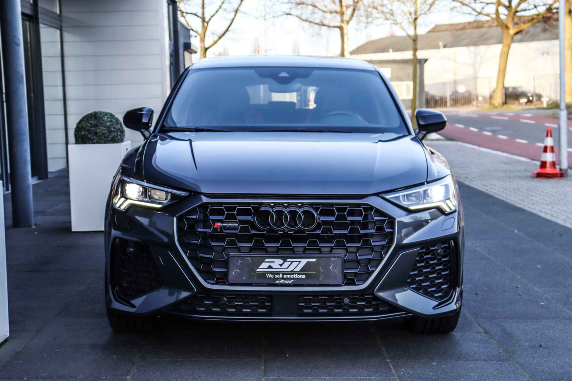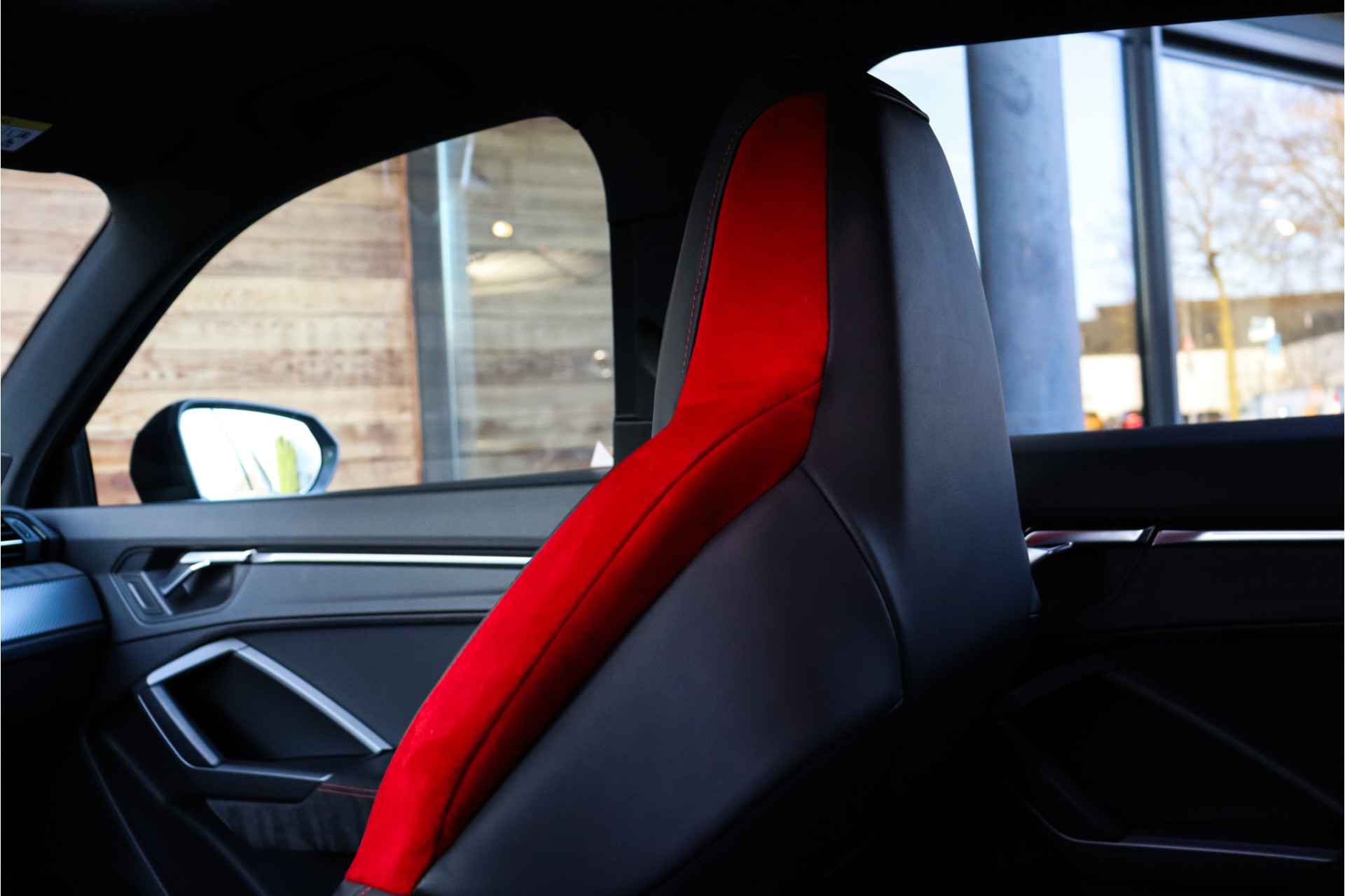Autobedrijf John van der Rijt biedt u aan deze zo goed als nieuwe, mooi geconfigureerde en puntgave 400pk sterke Audi RSQ3 2.5 TFSI Quattro uit 2020 met maar 92dkm in Daytona grijs met onder andere: Panoramadak, Trekhaak, Matrix led, Ambiance verlichting, Stoelverwarming, DAB Radio, Lederen bekleding met diamond rode stiksels, Elektrisch verstelbare stoelen, afgevlakt stuurwiel en ga zo maar door