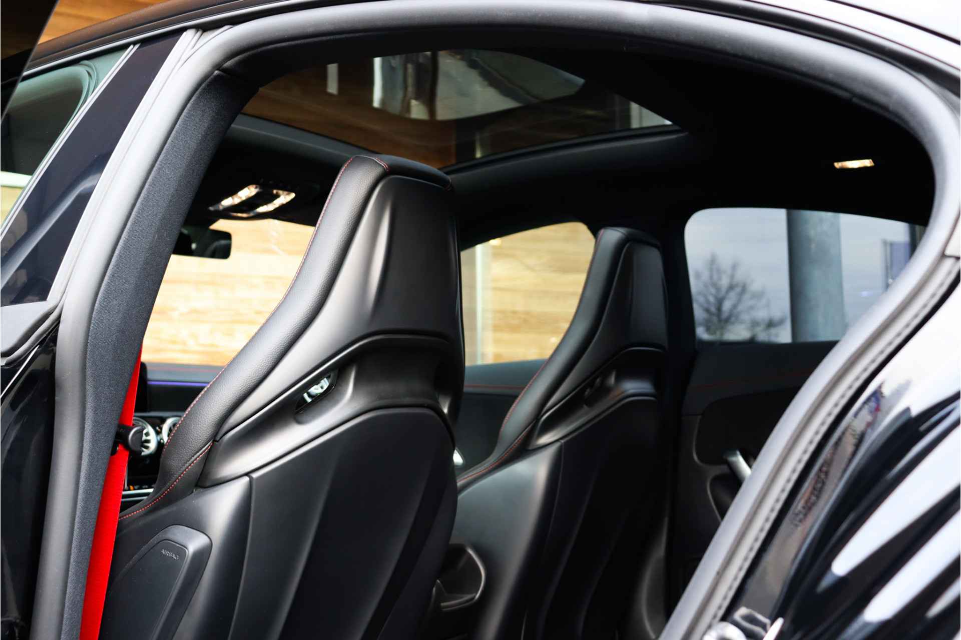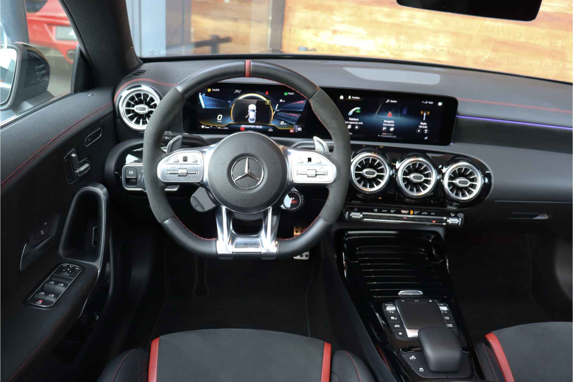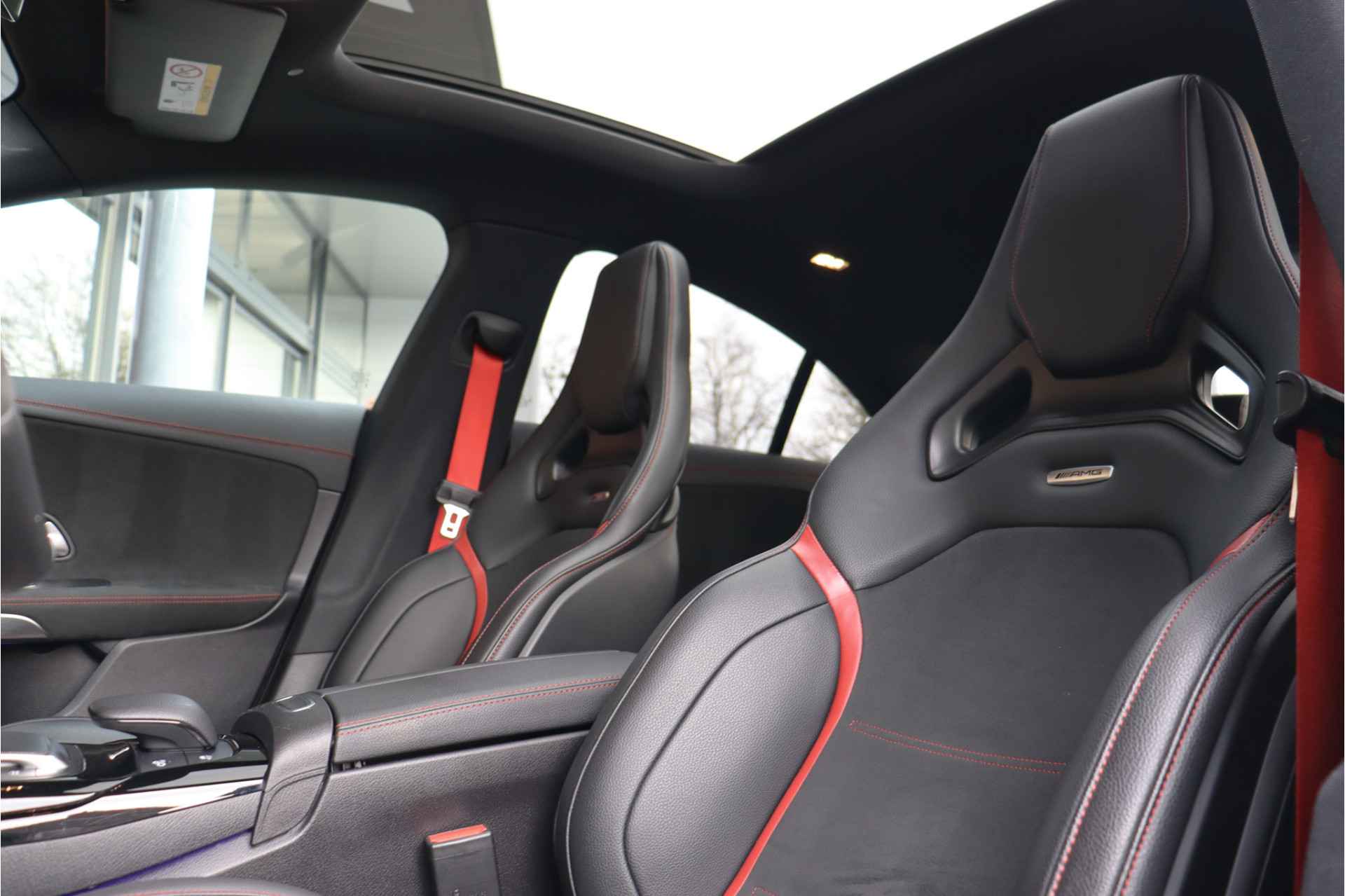 Deze Mercedes CLA 35 is o.a voorzien van: Schaalstoelen met rood stiksel en memory, Panoramadak, Memory, stoelverwarming, Apple carplay, 360 camera, etc