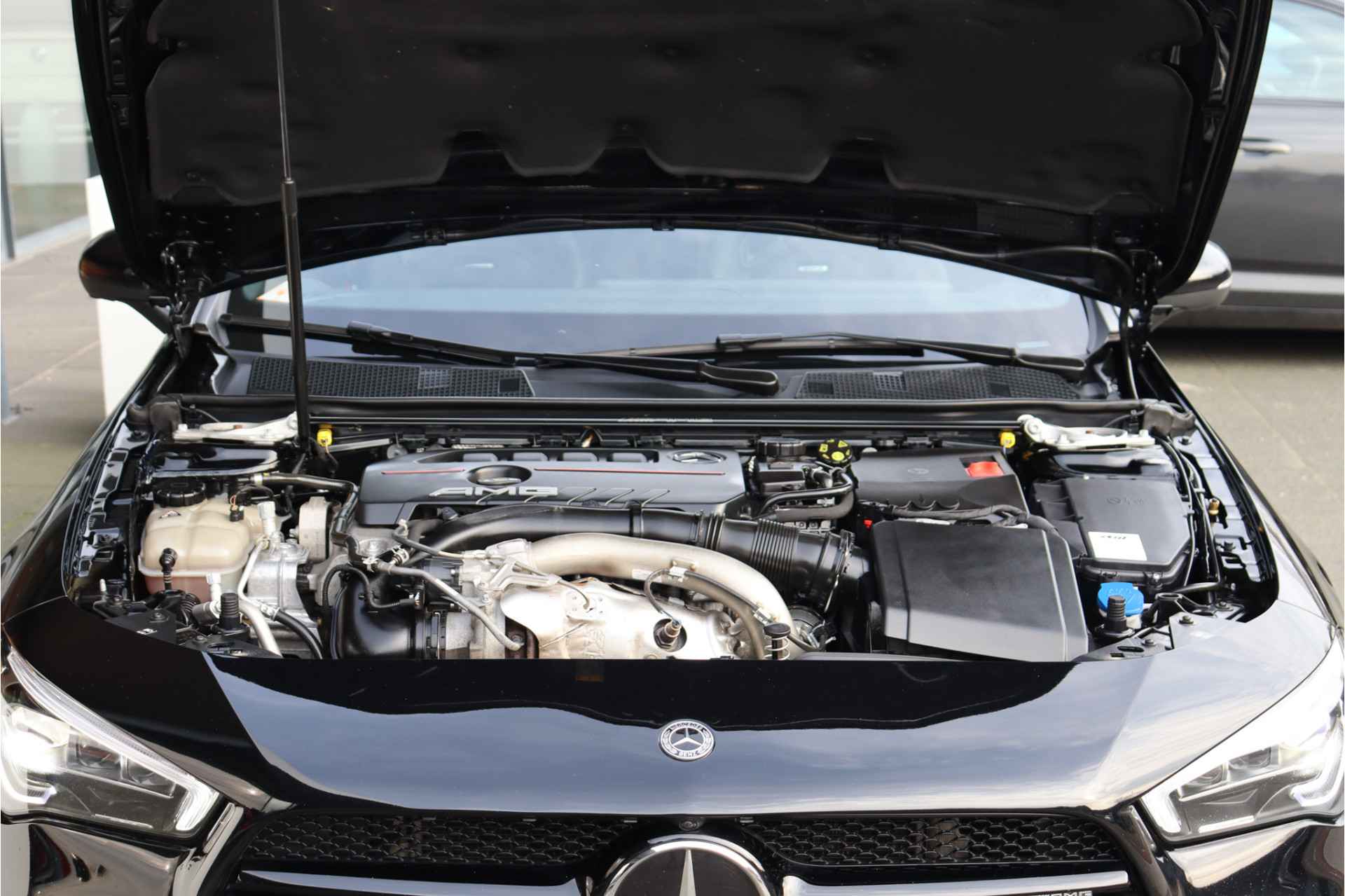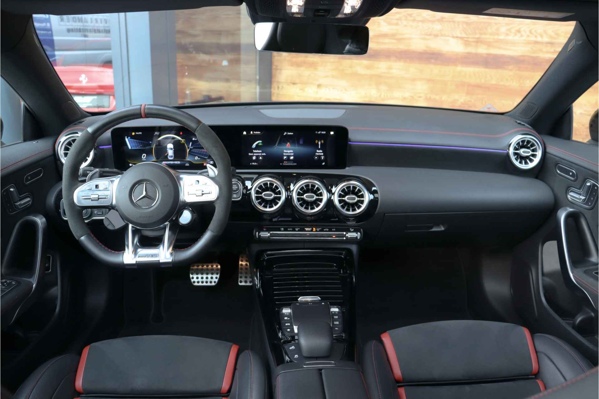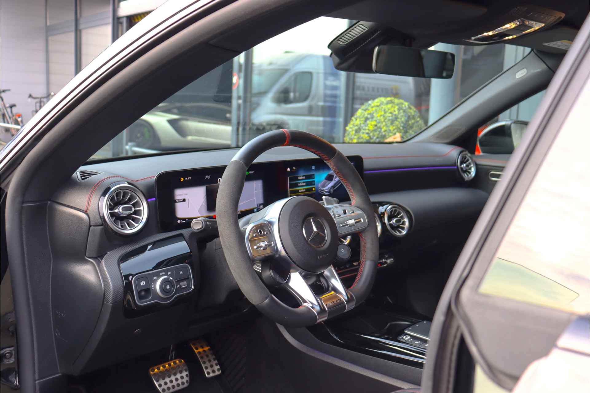 Deze Mercedes CLA 35 is o.a voorzien van: Schaalstoelen met rood stiksel en memory, Panoramadak, Memory, stoelverwarming, Apple carplay, 360 camera, etc